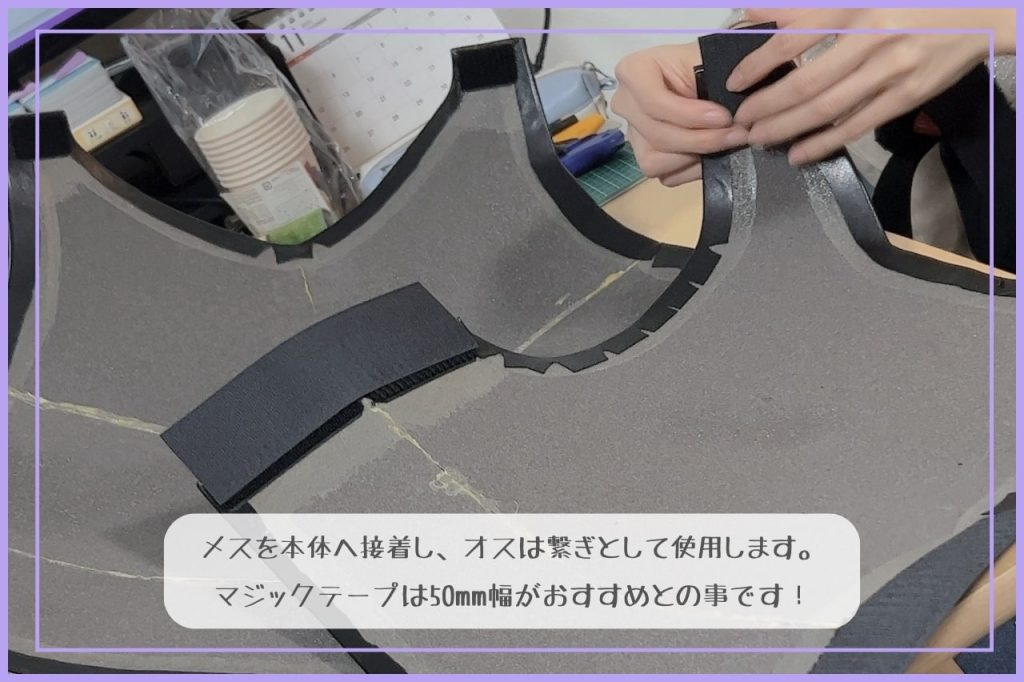マジックテープは、メス(ふわふわしている方)を本体へ接着します。