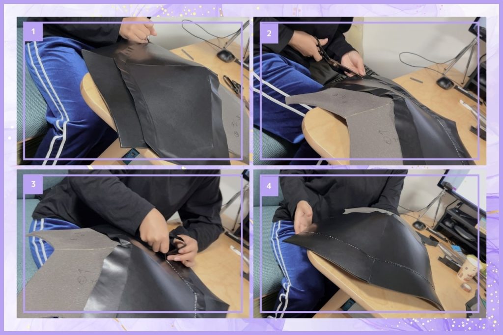 これまでの作業を繰り返しながら、全てのパーツに布貼りを行います。
