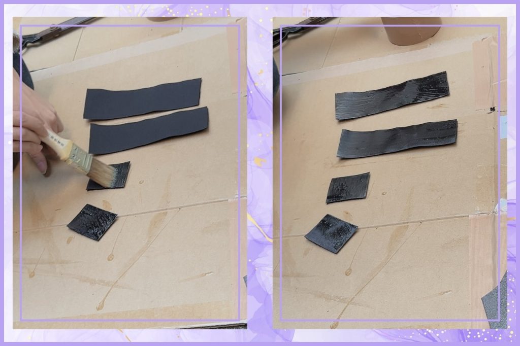 マジックテープを必要な長さにカットし、ハケを使用しGボンドを塗布していきます。