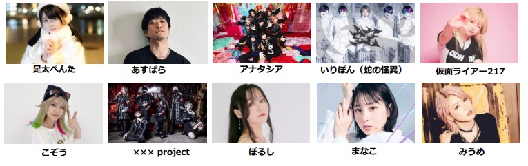 #コンパス踊ってみたステージでは、ニコニコ動画などで活躍する踊り手たちが集合し、『#コンパス』でお馴染みの楽曲などに合わせてパフォーマンスを披露します。今回は、足太ぺんた、あすぱら、アナタシア、いりぽん(蛇の怪異)、仮面ライアー217、こぞう、××× project、ぽるし、まなこ、みうめの出演が決定しました。