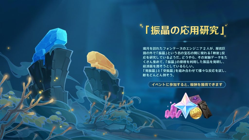 イベント期間中、「極思狂乱の大合奏」、「万千珍品の大収集」、「音韻律動の大交流」の各段階のコンテンツが開放され、各コンテンツをクリアすると、★4「雄々しき戒犬・ゴロー(岩)」を招待できるほか、「ナイトウィンド・ホルン」・原石・知恵の冠・キャラクター天賦素材・モラなどの報酬を獲得できます。
