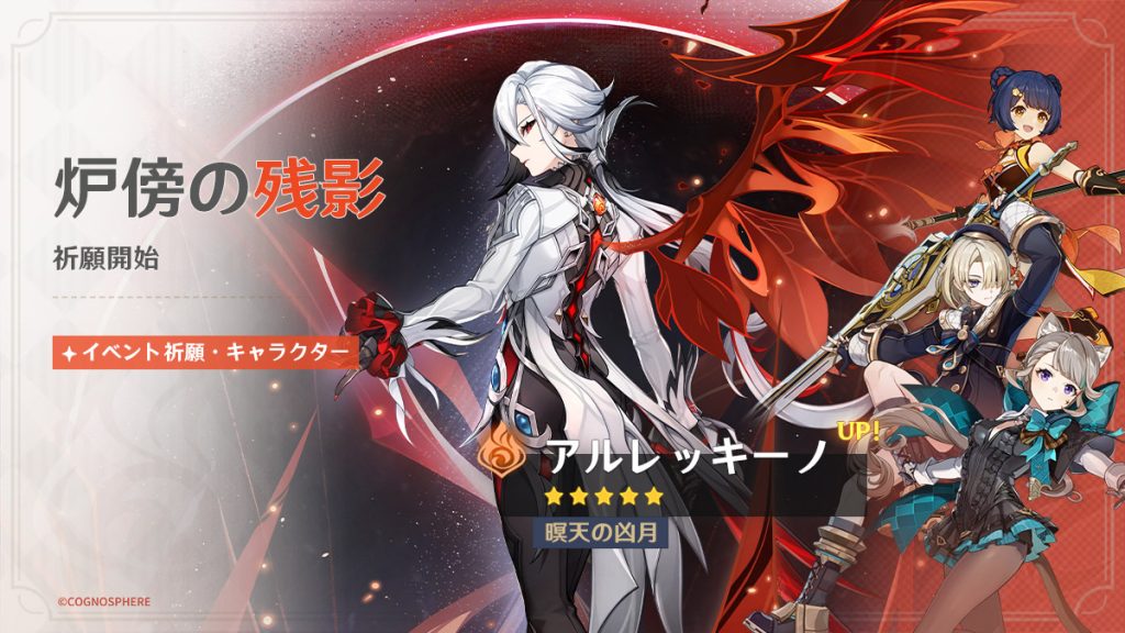 株式会社COGNOSPHERE(本社:東京都渋谷区、代表取締役社長:李 承天)は、HoYoverseが配信するマルチプラットフォーム対応オープンワールドRPG『原神(げんしん)』において、本日4月24日(水)にVer.4.6「双界に至る炎、熄えゆく赤夜」をリリースいたしました。新★5キャラクター「アルレッキーノ(炎)」の登場や、新エリアの開放、開催予定の新イベント情報などをお知らせいたします。