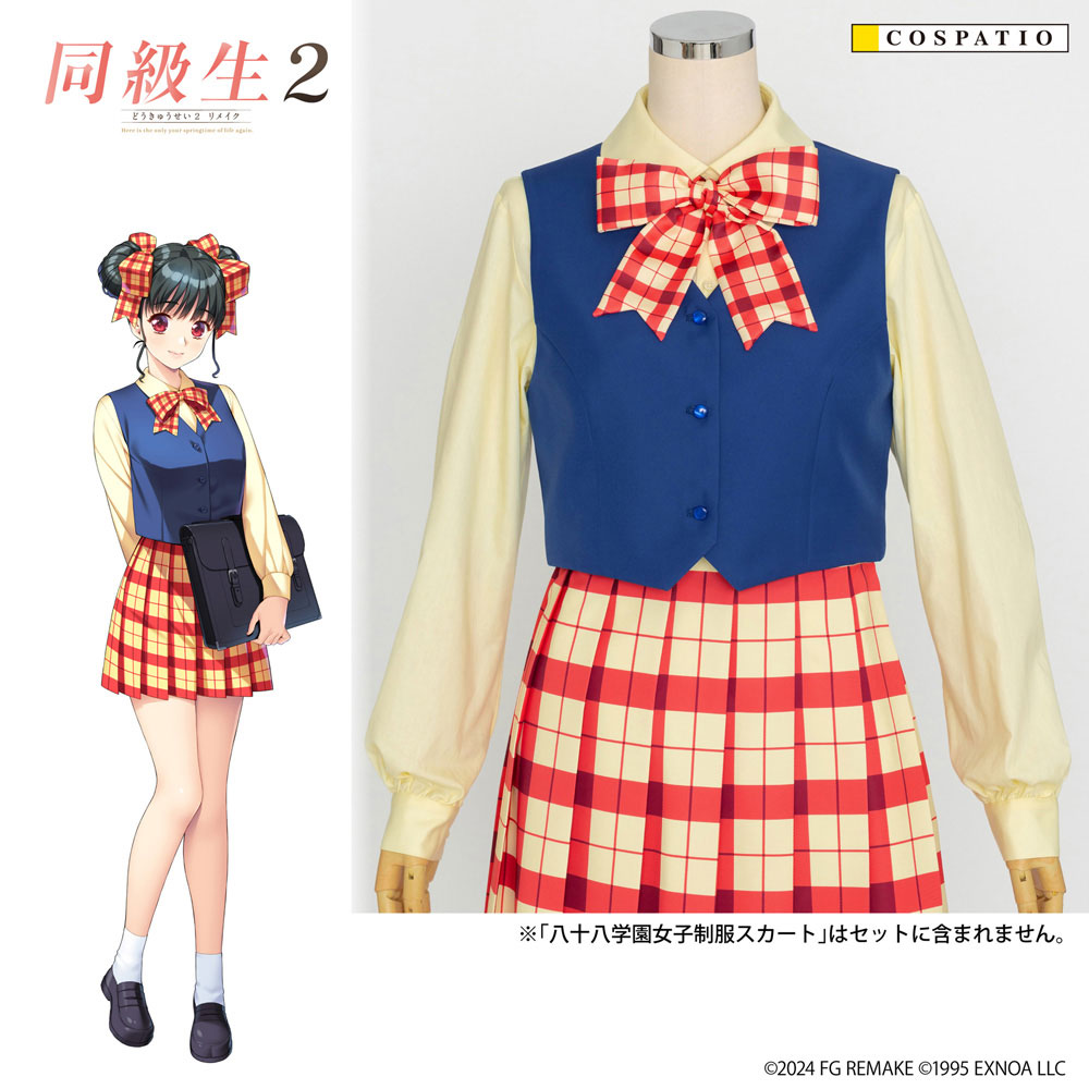 1997年発売の「同級生2(Windows版)」をベースに、2024年6月に発売された『同級生2リメイク』。公式キャラクターコスチュームのCOSPATIO(コスパティオ)ブランドより、公式監修のもと鳴沢唯たちが通う「八十八学園(やそはちがくえん)」の女子制服が登場。