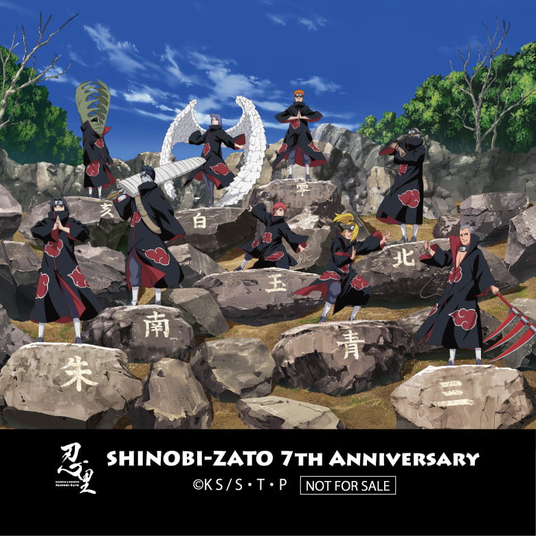 第一弾として、イベント開催期間中の3月20日(金)から5月31日(日)にご来場いただいたすべてのお客様に、忍里7周年オリジナルステッカーをプレゼントいたします。デザインは“7周年”に合わせた「第七班(NARUTO-ナルト-)」と「第七班(BORUTO-ボルト- NARUTO NEXT GENERATIONS)」に加え、「尾獣」、「暁」の全4種類をご用意しており、ランダムでお渡しいたします。