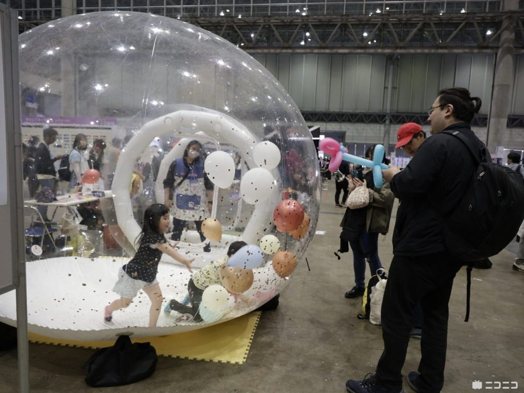 ネットを中心に活動するクリエイターが会場内に自分のスペースを持ち、自由に表現できる「クリエイタークロス」には、両日で過去最多の900組超が出展。リーゼントや催眠術の体験、ガチャポンやフジツボなどユニークなものを楽器にしたパフォーマンス、ティッシュをどれだけ遠くに投げられるかを競い合う超個性派のスペースから、自主的にキッズスペースを設けるクリエイターまで、幅広いジャンルが会場を彩りました。