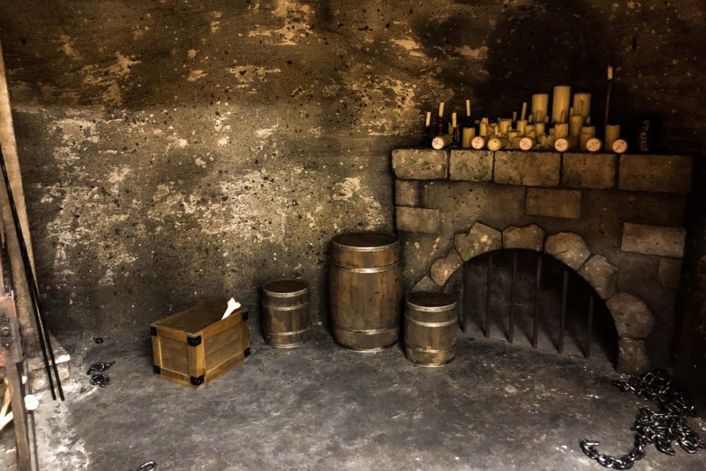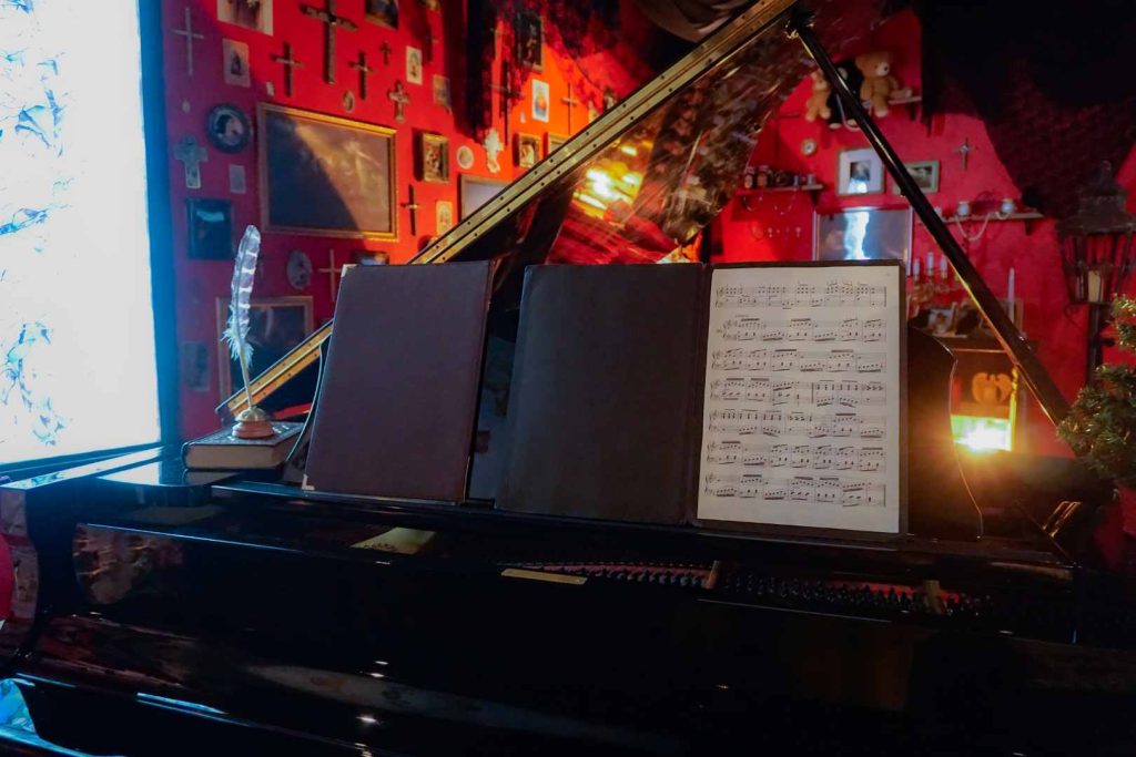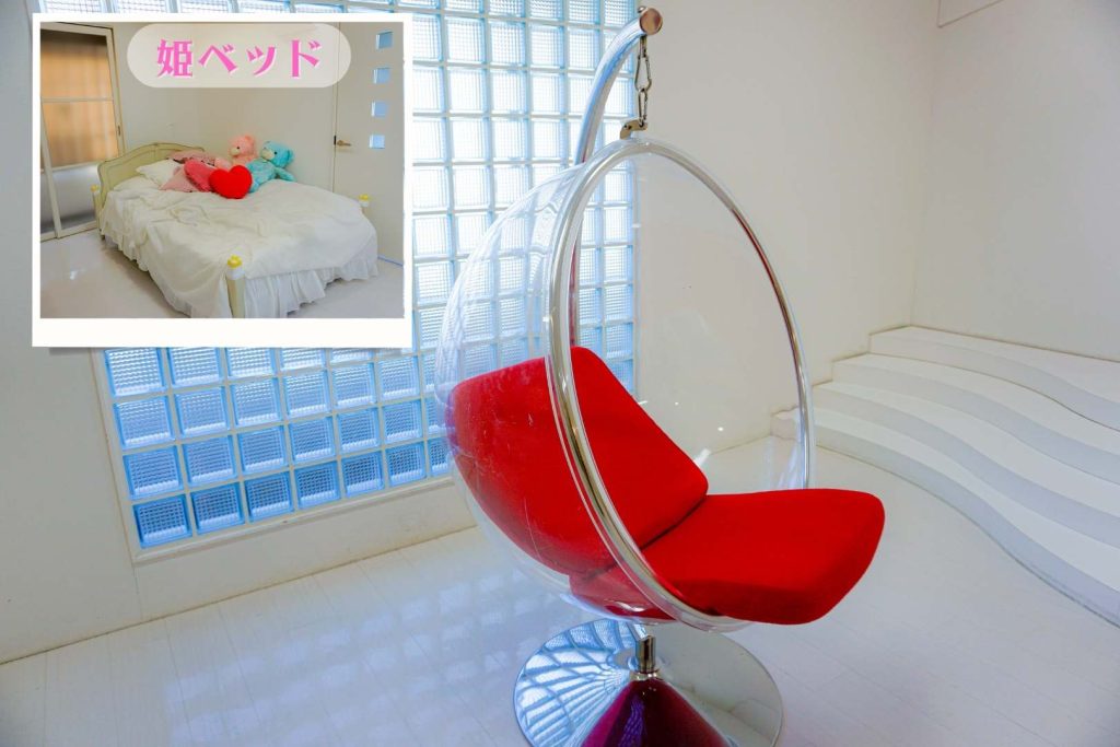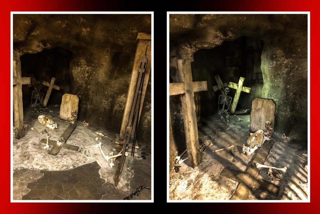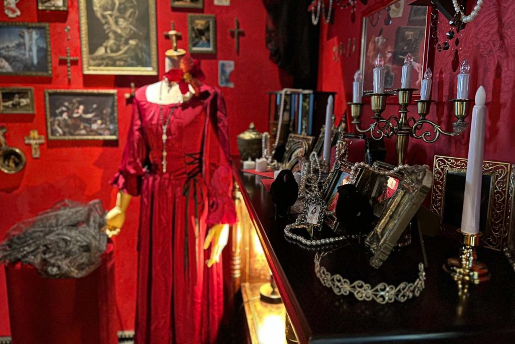 壁は元々白かったものを赤く塗り直し、十字架が張り巡らされている少し不気味な部屋となっています。