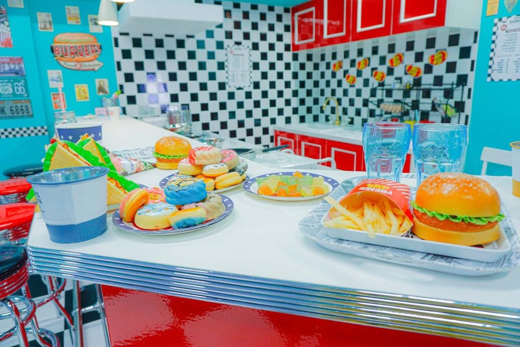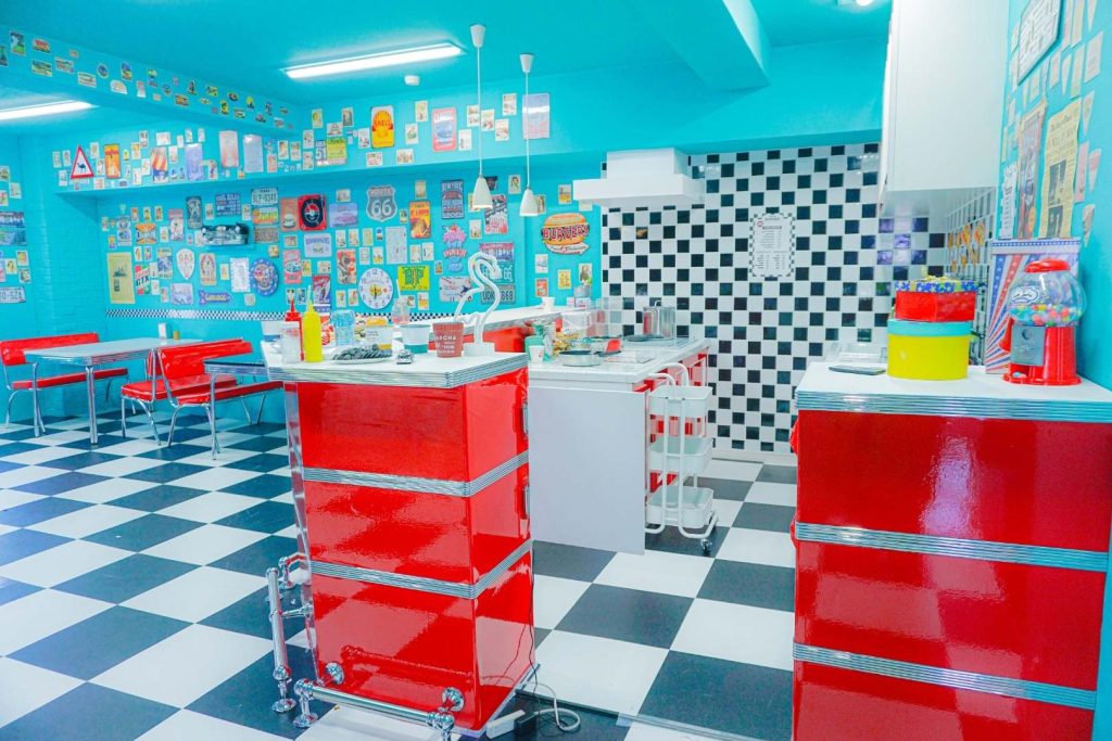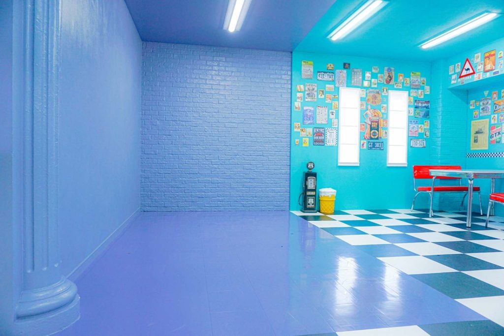 アメリカンダイナーで水色を基調としたPOPな印象ブースとなっております。