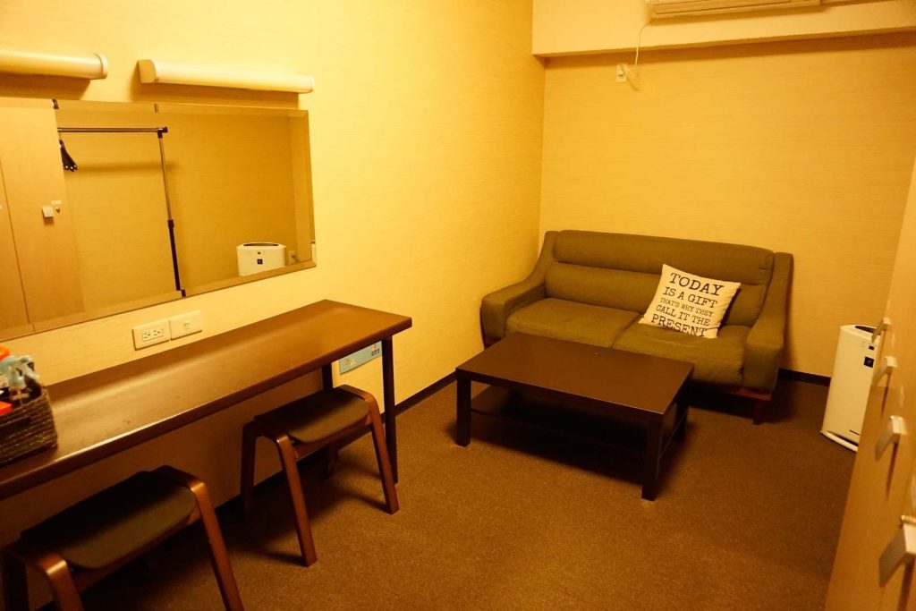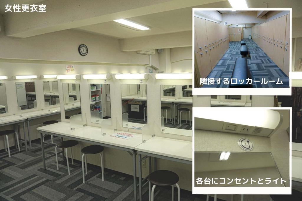 ライト付きドレッサーと広々とした空間で、入れる人数は50名ほど!