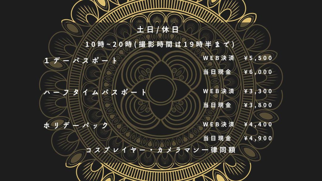一人当たりコスプレイヤー/カメラマン同額一律料金